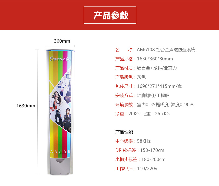 產品名稱:AM6108 鋁合金聲磁防盜系統