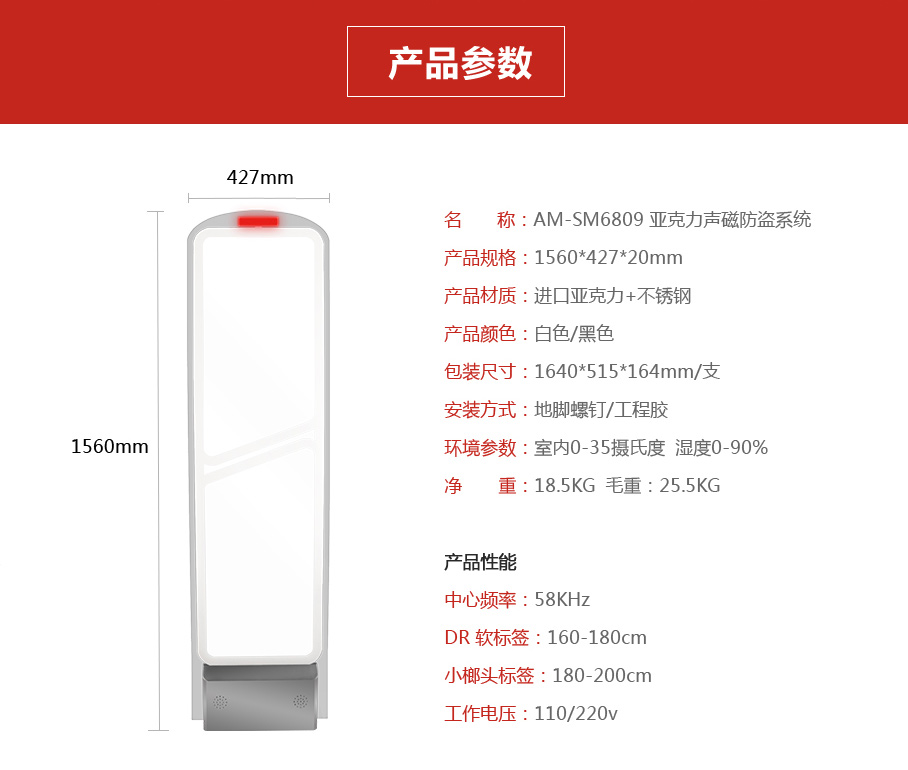 產(chǎn)品名稱:AM6809 亞克力聲磁防盜系統(tǒng)