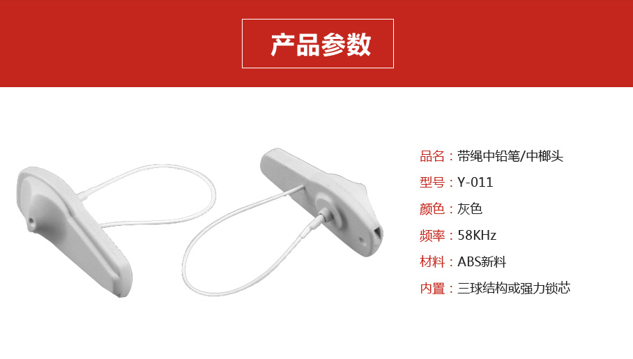 產品名稱:防盜硬標簽 帶繩中鉛筆中榔頭 Y-011